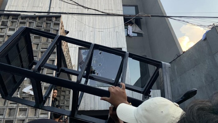 Kaca rumah Sahroni juga tampak pecah dan dirusak. Massa dengan leluasa menguasai dan menjarah rumah tersebut.